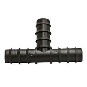 Durable barbed tee, fits 3/4" inner diameter hosing.